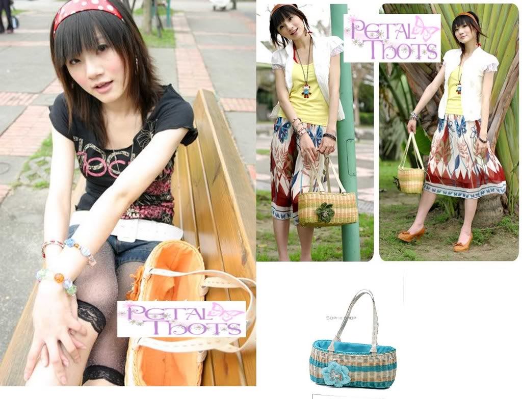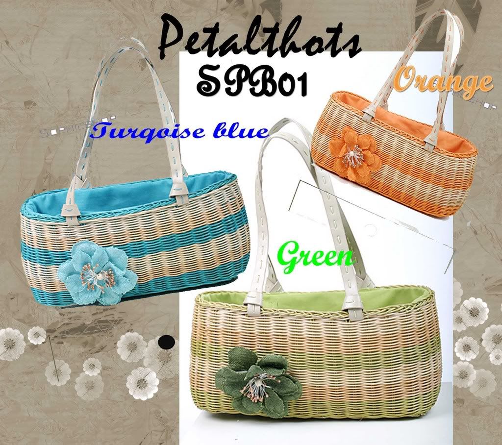 New Arrivals! Trendy Straw Bags in Fanciful colours! There is a zip attached to the interior. The corsage shown on the side of the bag is non-detachable.Limited Quantities available.